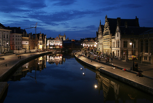 [**···] Korenmarkt: Es la plaza principal de la ciudad, a su derecha quedan el Belfry (campanario), la Iglesia de San Nicolas y la Catedral de San Bavón. A su izquierda queda el Puente de San Miguel (Michelbrug).